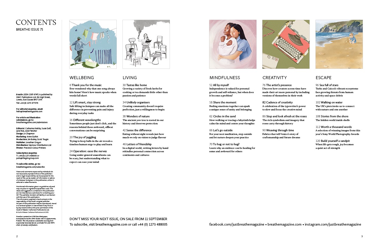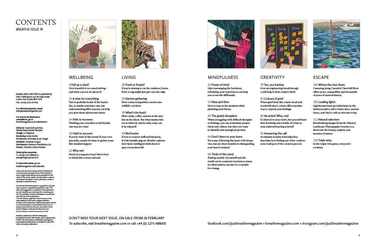 Breathe is the original mindfulness magazine for a calmer and more relaxed you. This body-and-soul guide to a happier, healthier life includes 5 sections – wellbeing, living, mindfulness, creativity and escape – with the aim to “make more time for yourself”. Each issue includes beautiful illustrations, craft projects, and inspiring features such as how to achieve relief from stress, increase resilience and find greater happiness.
