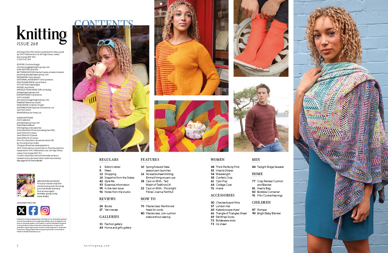 Knitting is the UK’s original and best magazine devoted to this popular craft. Bridging the divide between fashion and hand-Knitting, each issue offers at least 25 new and contemporary patterns including knits for women, men, children and the home. Bursting with patterns from the world’s leading hand-knit designers, it is both style conscious and practical with techniques, clear how-to’s, designer profiles and interesting features, making it an essential read for the discerning knitter.