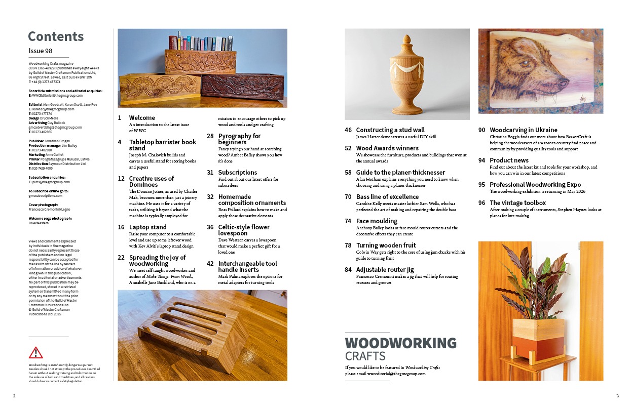 Woodworking Crafts is a bi-monthly magazine for woodworkers of all levels, covering everything from green woodworking to cabinetmaking, up-cycling, restoration and many craft disciplines based on wood such as marquetry, pyrography, woodturning and carving. Woodworking Crafts is intended for anyone and everyone from beginners to experienced woodworkers who want to expand their woodworking knowledge and learn new skills.
